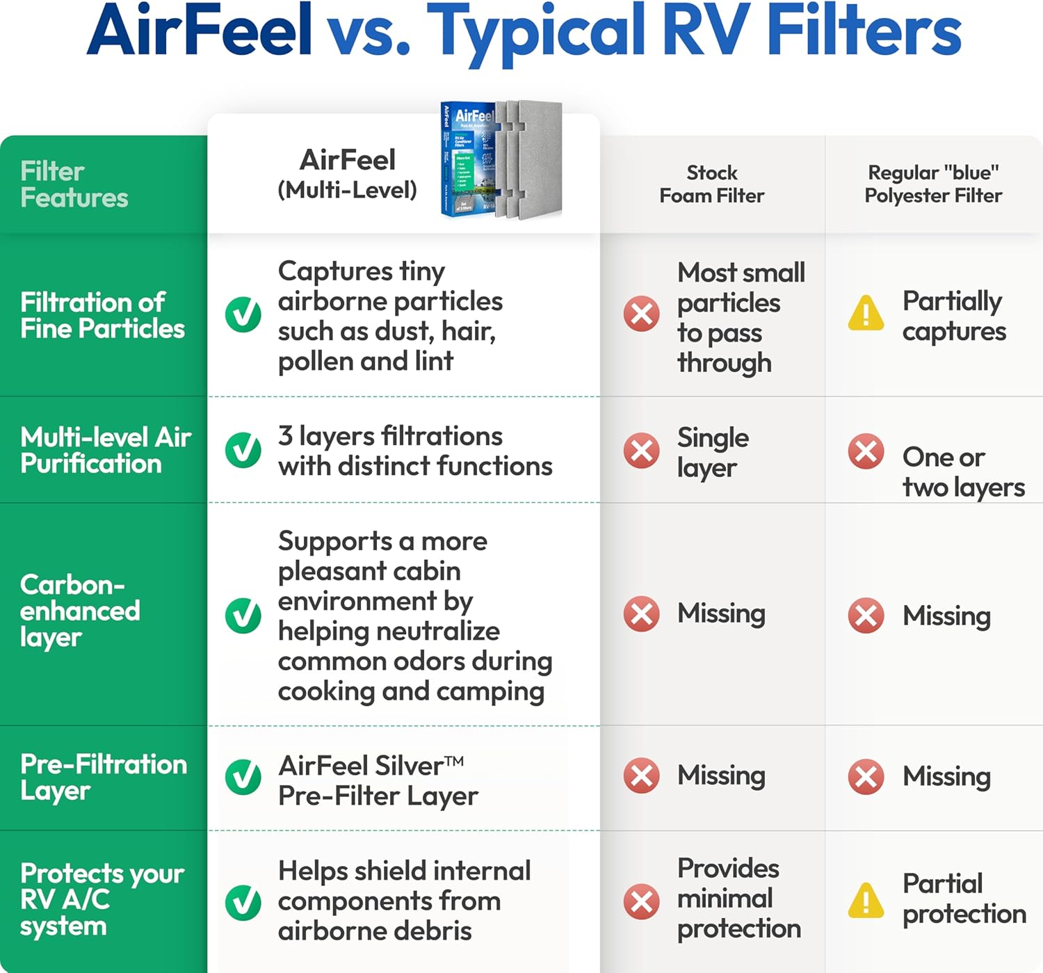 Breathe cleaner air on the road with AirFeel’s premium RV AC filter—built for comfort, protection, and long-lasting performance.
